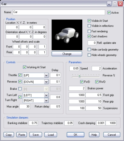 Please note that resetting the Car object run-time (for example by calling the iObjectReset() script function)