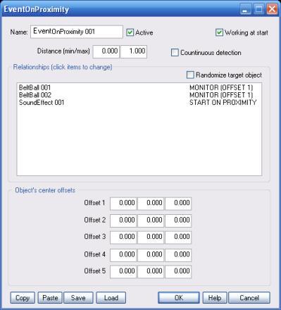 This list defines how the EventOnProximity object relates to the objects that are linked to it.
