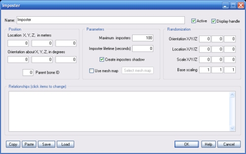 The relationship window on the Imposter object's property dialog lets you set linked objects