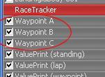 A number of Waypoint objects must be added to your project and placed along the racetrack,
