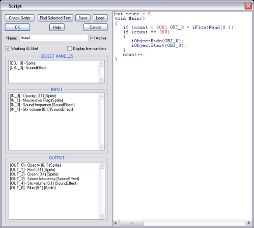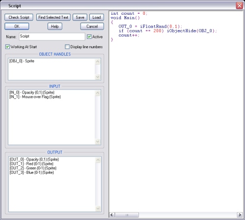 if (count == 200) iObjectHide(OBJ_0); line, the script checks if the