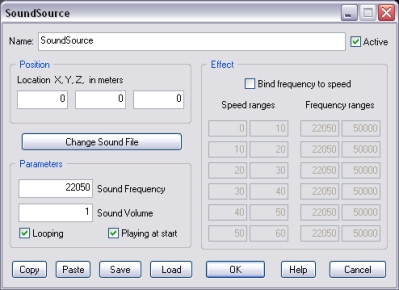 If this option is checked, the sound frequency is adjusted dynamically depending on the current sound source object's speed.